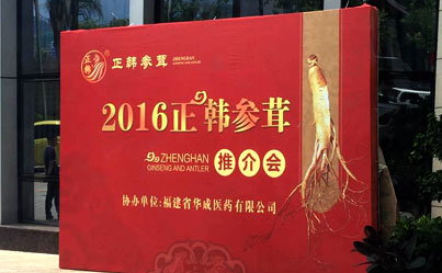 正韓集團2016參茸推薦會與福建華成醫(yī)藥有限公司共同舉辦,雙方表示此次會議取得了圓滿成功 會議主席臺 正韓參茸訂貨區(qū) 來賓簽到處 訂貨來賓主席餐位.....